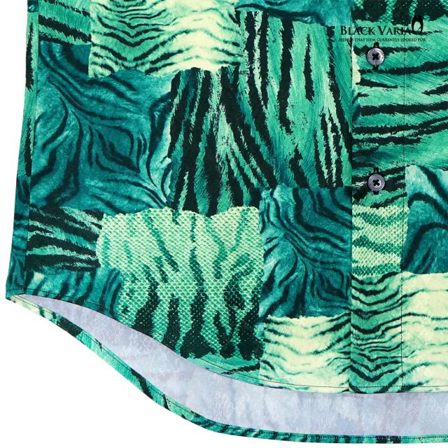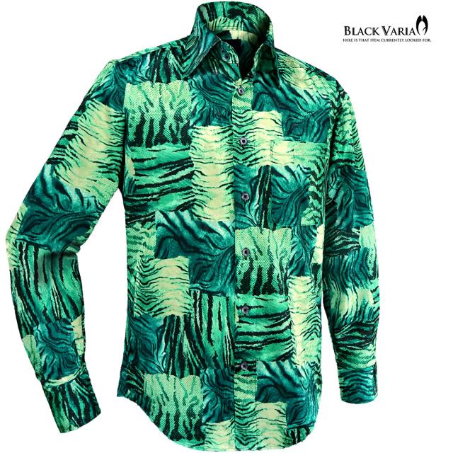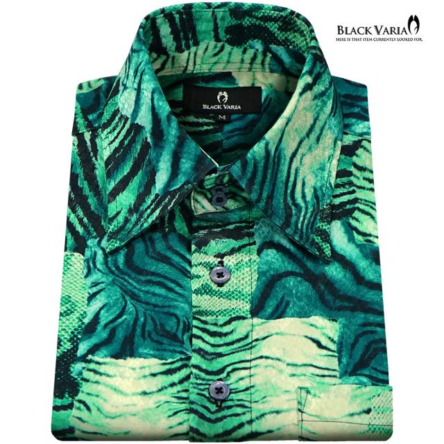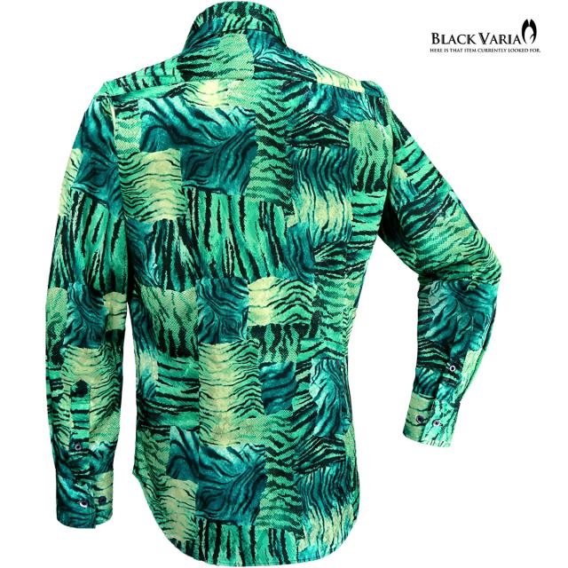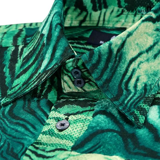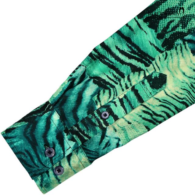 サテンシャツ ドゥエボットーニ タイガー柄 ドレスシャツ レギュラーカラー ジャガード パーティー メンズ mens(グリーン緑) 211201