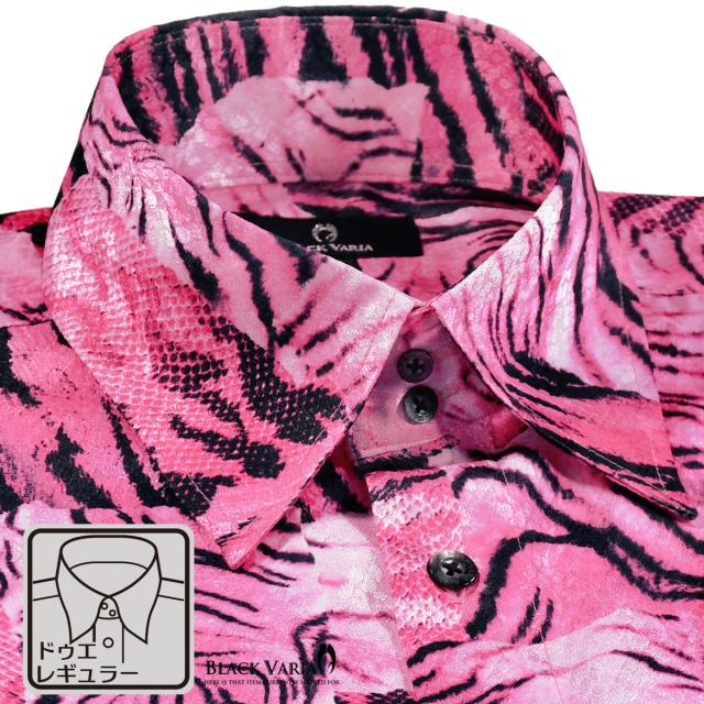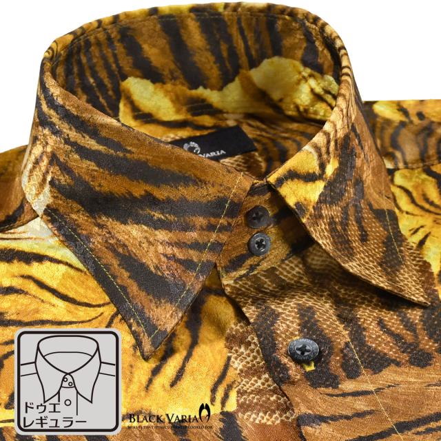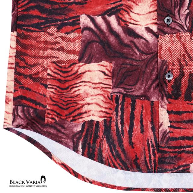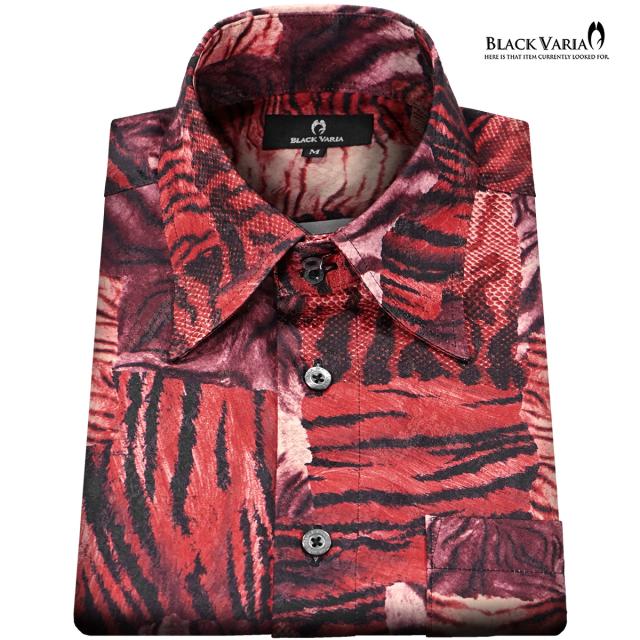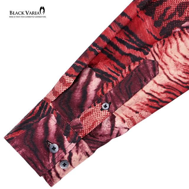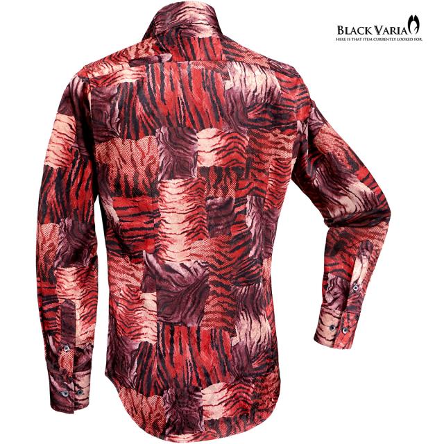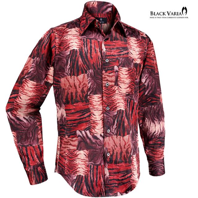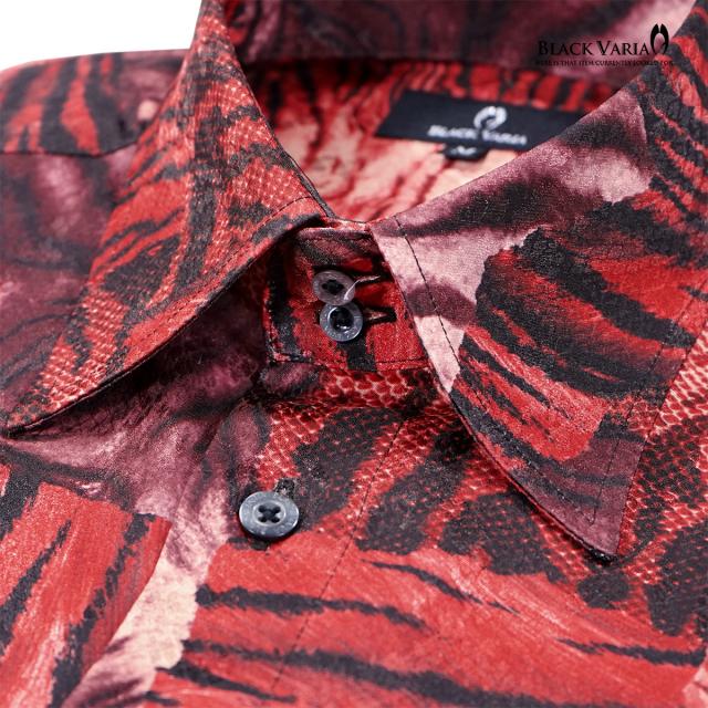 サテンシャツ ドゥエボットーニ タイガー柄 ドレスシャツ レギュラーカラー ジャガード パーティー メンズ mens(レッド赤) 211201