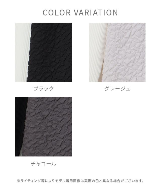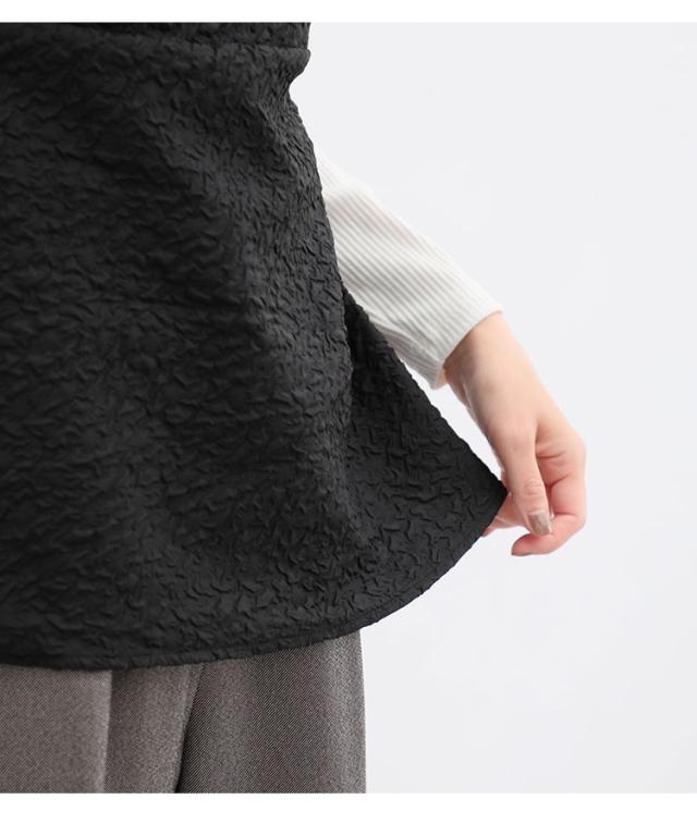 ぽこぽこの表面感が華やかなビスチェ×シンプルなハイネックトップスの、レイヤード風デザイン。