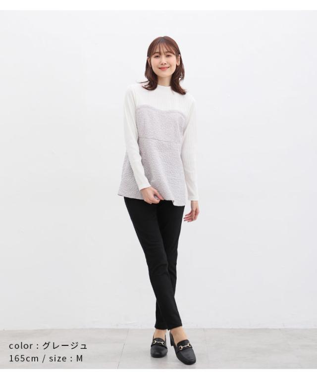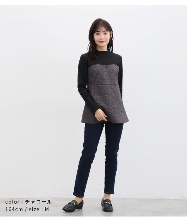 ハイネックトップス部分は、ストレッチが利いて柔らかな綿混テレコ素材。