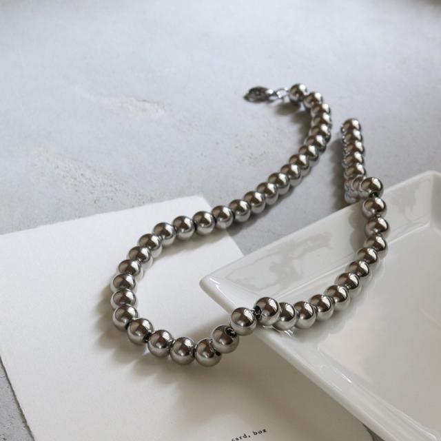 ネックレス ステンレス製 レディース ショートネックレス サージカルステンレス 金属アレルギー ボールチェーン ブランド 10mm 1cm つけっぱなし シルバー 30代 40代 50代