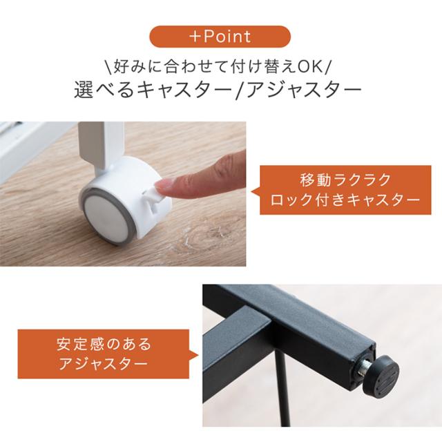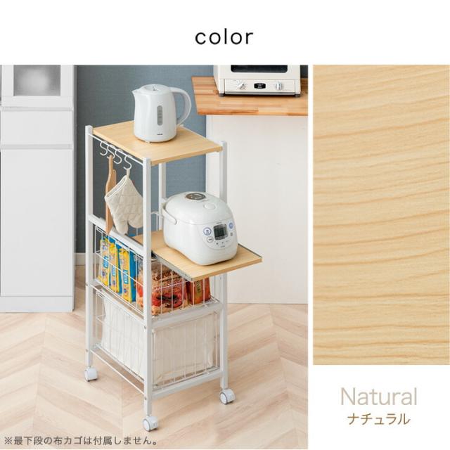 ラック部、バスケット:スチール(粉体塗装)、天板・棚板:メラミン樹脂化粧繊維板、キャスター:PU