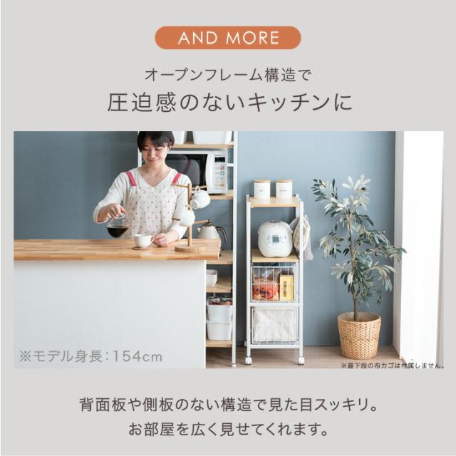 スリムラック 幅34 高耐荷設計 高さ101cm ロータイプ キッチン収納 奥行41 シンプル ブラウン ナチュラル 北欧 木目調 ボード 台所 収納 食器棚 おしゃれ S字フック付 カゴ付