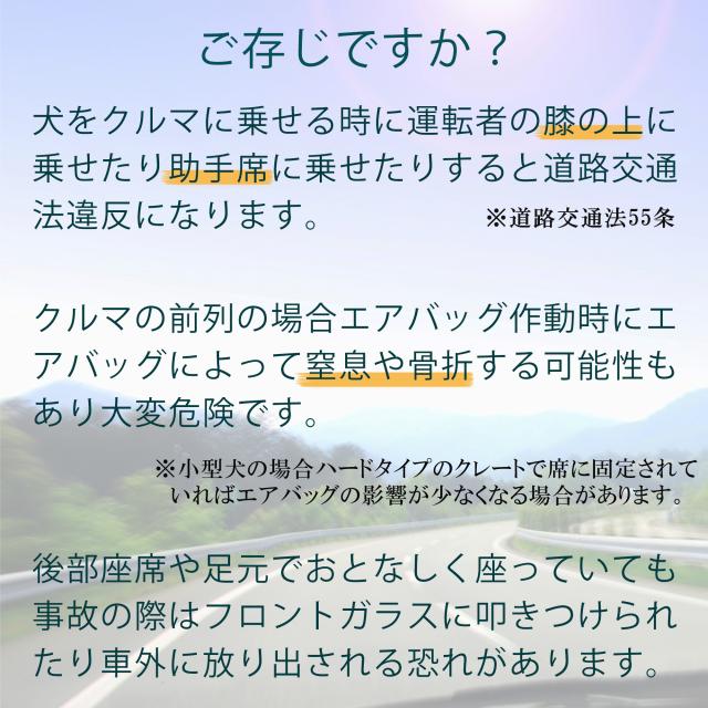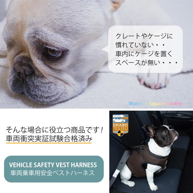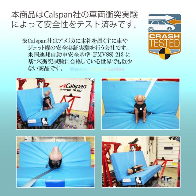 犬の安全ハーネスはアメリカ連邦自動車安全基準FMVSS213基づく衝突実証試験に合格しています。