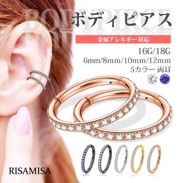 ボディピアス セグメント 両耳 リングピアス 金属アレルギー サージカルステンレス 16G 18G ジュエル 軟骨 セグメントクリッカー