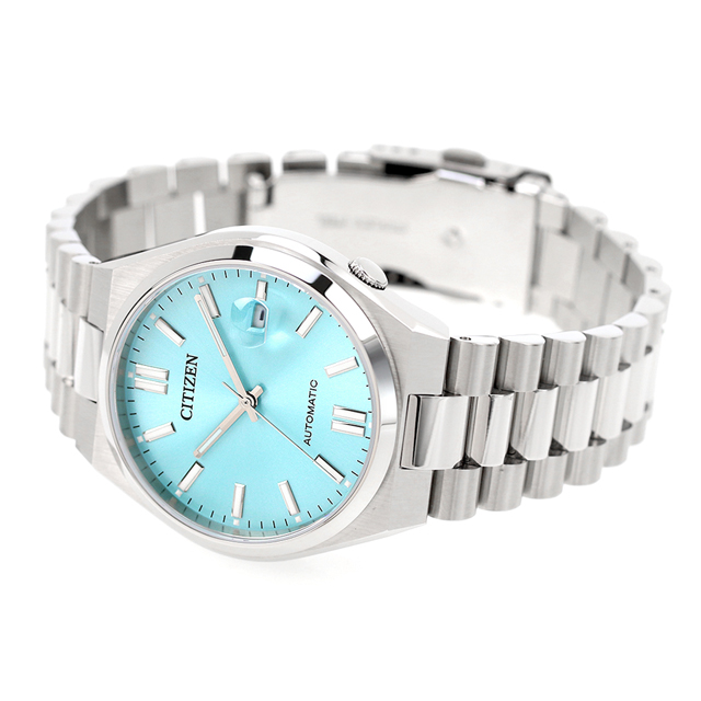 正規品 7年保証キャンペーン 送料無料 シチズン コレクション メカニカル メンズ レディース 腕時計 NJ0151-88M CITIZEN COLLECTION TSUYOSA Collection Mechanical アナログ アイスブルー ◆海外では“TSUYOSA”Collectionの愛称で大人気のシリーズが日本に上陸!発色の良い文字板にシンプルでベーシックな針とインデックスを組み合わせ、すっきりとしたデザインが魅力の機械式時計です。スポーティなケース形状と腕なじみの良い3列バンドで付け心地の良さにもこだわっています。カレンダー部分には、視認性を高める拡大鏡レンズを採用。裏ぶたはシースルーバック。機械式時計ならではの回転する錘(おもり)やメカの動きを楽しめます。シンプルなデザインは、男女問わずお使いいただけ、プレゼントにもおすすめです。 発売日:2023年9月発売 機械式腕時計