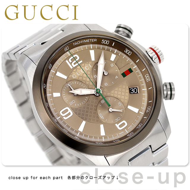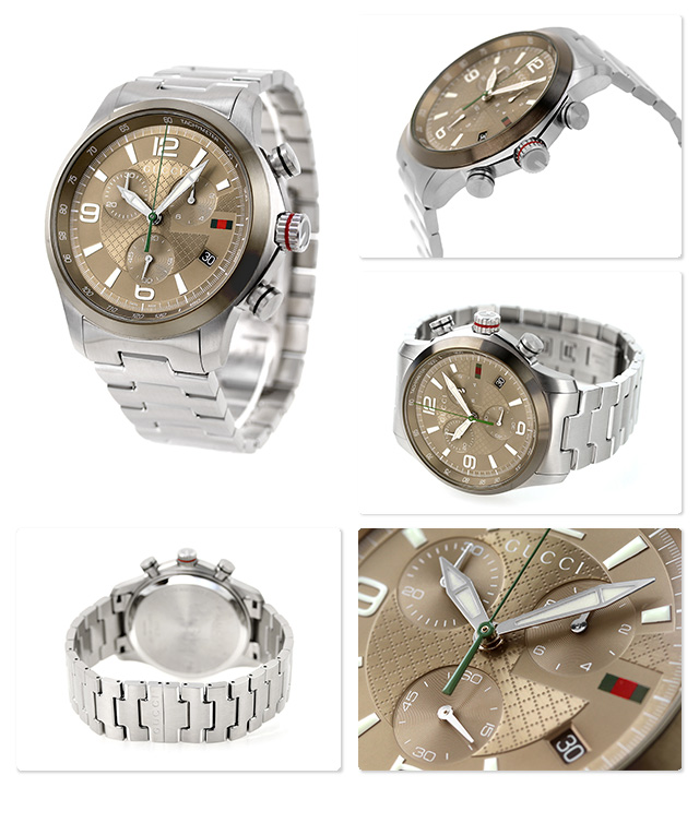 7年保証キャンペーン グッチ Gタイムレス クロノグラフ スイス製 メンズ 腕時計 YA126289 GUCCI G-TIMELESS アナログ ベージュ ◆1921年、グッチオ・グッチは革製品の会社を起業し、フィレンツェに小さな鞄店を開業。ブランドに対する彼のビジョンは、ロンドンと、彼がサボイ・ホテルで働いていた時に見た英国貴族の洗練された審美眼から培われたものです。財布や革製品以外にもアクセサリーや腕時計も品質の高さや、洗練されたデザインが人気で一気に高級ブランドの地位を確立しました。今では名を知らない人はいないぐらい世界的に有名なブランドです。 ビッグケースが特徴のクロノグラフ搭載モデル。シンプルなデザインはシーンを問わずお使いいただけ、誕生日や記念日などのプレゼントにもおすすめです。