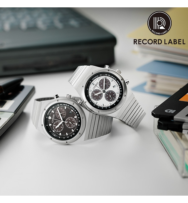 正規品 7年保証キャンペーン 送料無料 シチズン コレクション レコードレーベル 光発電エコ・ドライブ 1984 chronograph 流通限定モデル クロノグラフ ソーラー 光発電エコドライブ 光発電エコ・ドライブ メンズ レディース 腕時計 AT2540-57E CITIZEN RECORD LABEL Eco-Drive アナログ ブラック 黒 ◆1984 chronograph 1984年に発売された多機能アナログクオーツクロノグラフ「スポルテ MS」を、昭和後期の世界観をイメージした、"ポスト・ヴィンテージ"テイストにアップデートしました。「スポルテ MS」のケースからバンドにかけてのスタイリッシュなラインや少し武骨な印象を与えるベゼルの飾り穴処理を再現。レトロな印象とクロノグラフのスポーティーさを同時に楽しめます。オリジナルモデルをリスペクトした黒文字板モデルは、ケースにホーニング処理を施し、渋めの印象に。 発売日:2023年10月発売