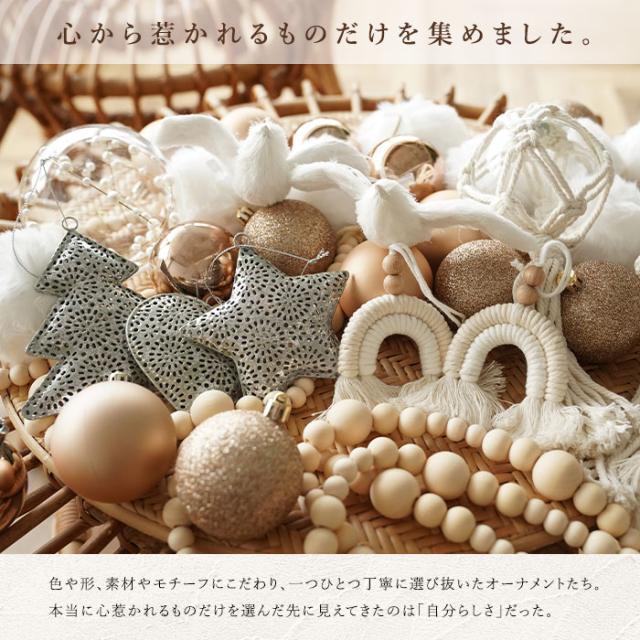 | あえて「主張しない」、これが正解。 存在感がありつつも、主張しすぎず、空間にふわりと佇む。 存在感がありつつも、私の「好き」を邪魔しない。 お気に入りの玄関にさり気なく溶け込む、 ラフでリラックス感溢れるミニツリー。 限られたスペースだからこそ、 大好きなインテリアを楽しみたい。 私らしい暮らしにフィットする 「ラペール プティ ベージェ」 このくらいが丁度いい。自分のために飾れる、クリスマスツリーができました。 雰囲気の違うポットツリーを多数ご用意。 オーナメントなど1点1点厳選し、トータルコーディネートしています。 環境やライフステージの変化にも調和できるよう、 華やかさはそのままに、サイズを少し小ぶりにしました。 忙しい時間の中でも、ちゃんと自分自身を見つめ直し、長く思い出を紡いでいけるようなそんなツリーになると嬉しいです。 考えぬかれたトータルコーディネート フルセットでお届けします ポットツリーはクリスマスツリーに必要なアイテムを全てセットにしました。あれこれ買い足す必要がなく、届いたその日からすぐに飾れる豪華なツリーセットです。「自分のためのクリスマスツリー」を思う存分お楽しみください。 ラインが美しいボリュームたっぷりのツリー 2種類の形や濃淡の違う葉をミックスすることでボリュームあるクオリティの高いツリーに仕上げました。 枝葉の密度があるので、お好みの位置にオーナメントをレイアウトすることが可能です。後ろ側のボリュームは抑えめにすることで、壁面に近づけて飾れる省スペース設計です。 奥行きが狭い場所でも気軽に飾れるようにツリーの背面のボリュームは抑え、薄型のツリーに仕上げました。 心惹かれる厳選されたオーナメント ポットツリーのテーマに合わせ、スタッフが1点1点厳選したこだわりのオーナメントたち。歴史あるクリスマスブランドや、弊社オリジナルのオーナメントを交えながらツリーの世界を丁寧に完成させました。飾り付けの時間もオーナメントをゆっくり眺める楽しいひとときとなりますように…。 アンティーク調カップ型ポット[シルバー] 長年使い込まれたようなシャビーな風合いが高級感と重厚感を演出しながらも華美になりすぎない上品なデザインに仕上げました。 オーナメントの魅力を際立たせるカップ型のポットです。 ※掲載している商品画像のオーナメントは前面を中心に飾り付けたイメージです。 |