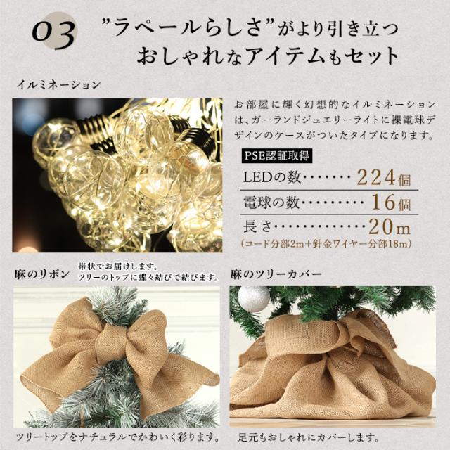 クリスマスツリー 210cm オーナメント セットツリー の木 北欧 おしゃれ 高級 ラペールドゥース 電飾 イルミ ツリーカバー セット