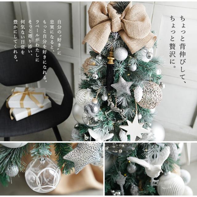 | 特別な日だから贅沢な気分で非日常を 良質な空間に身を委ねると、 不思議と心が満たされる。 ゆっくりと流れる、穏やかな 時間のなかで、本来の自分を 取り戻せたような気がした。 ちょっと背伸びして、ちょっと贅沢に。 自分の??好き?≠ノ忠実になると、 もっと自分を好きになれる。 ラペールがわたしにそっと寄り添い、 何気ない日常を 豊かにしてくれる。 世界を代表するオーナメントブランドから厳選した、最高級のオーナメント。 【INGE-GLAS】 【KAEMINGK】 歴史ある高級オーナメントブランドをメインに、一からデザインしたオリジナルアイテムを交えハイクラスのデコレーションツリーを目指しました。 品質の高さとこだわりで、クリスマスツリーに価値ある輝きをプラスします。 ツリースカート、イルミネーションは付属品です。 ご購入いただいた方にもれなく収納袋、収納用面テープ、ツリー設置用手袋をプレゼント! |