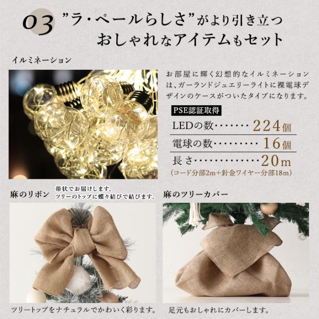 クリスマスツリー 180cm オーナメント セットツリー の木 北欧 おしゃれ 高級 ラペールベージェ 電飾 イルミ ツリーカバー セット