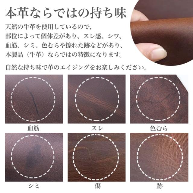 ※個体差はありますが、スレ感、シワ感、血筋、シミ等、擦れた跡などがありますが、本製品(牛革)の特徴です。自然な持ち味で革のエイジングをお楽しみください。