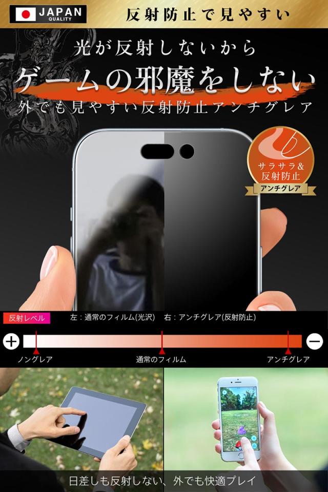 iPhone15 ガラスフィルム アンチグレア 保護フィルム 10H ガラスザムライ パズルゲーム用 反射低減 液晶保護フィルム ゲーム アイフォン iPhone 15 オーバーズ TP01