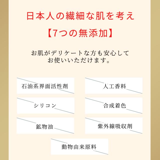 | ご注意 | ●お肌に異常が生じていないかよく注意して使用してください。 ●化粧品がお肌に合わない時、即ち次のような場合には、使用を中止してください。そのまま化粧品類の使用を続けますと、症状を悪化させることがありますので、皮膚科専門医等にご相談されることをおすすめします。 使用中、赤味、はれ、かゆみ、刺激、色抜け(白斑等)や黒ずみ等の異常があらわれた場合 使用したお肌に、直射日光が当たって上記のような異常があらわれた場合 ●傷やはれもの、しっしん等、異常のある部位にはお使いにならないでください。 ●使用後は必ずしっかりと蓋をしめ、乳幼児の手の届かない場所に保管してください。 ●極端に高温又は低温の場所、直射日光のあたる場所には保管しないでください |