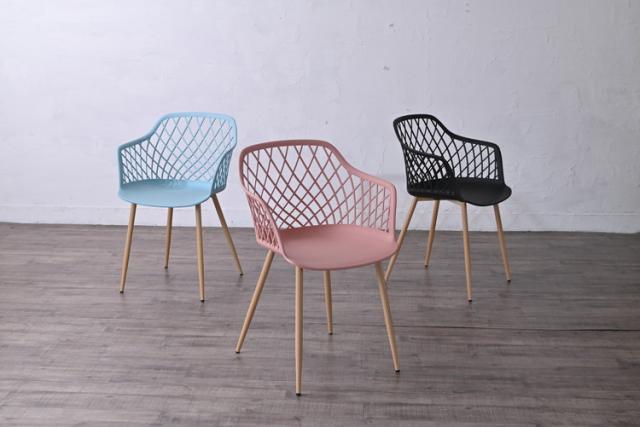 ダイニングメッシュ チェア 肘つき 北欧 4脚セット くすみカラー椅子 いす イス アーム 肘付き ダイニングチェア テラス ガーデン 庭 屋外可(代引不可)【送料無料】