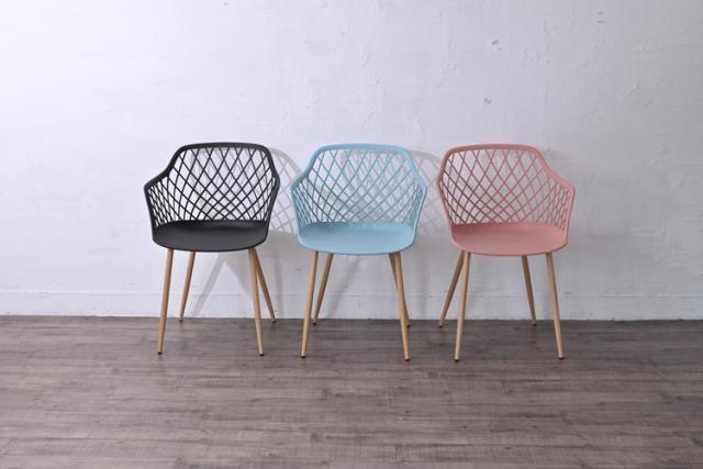 PP(ポリプロピレン)素材のメッシュデザインと、丸みのフォルムで、軽快でやさしい印象のチェアは重量約3.9kgと移動も楽々。