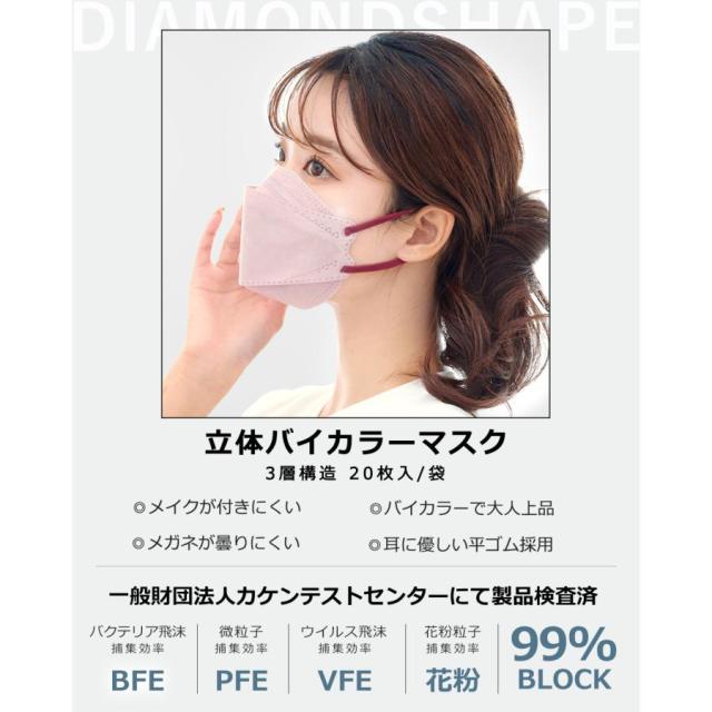 4個目半額セール 立体バイカラーマスク 立体マスク 20枚 4層構造 不織布マスク 血色マスク cicibella マスク 3Dマスク カラーマスク くちばし マスク 耳が痛くない 大人用 小顔マスク
