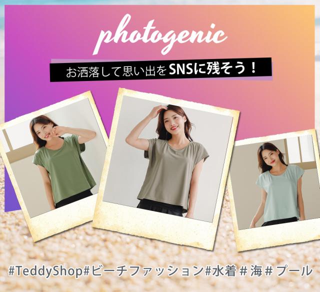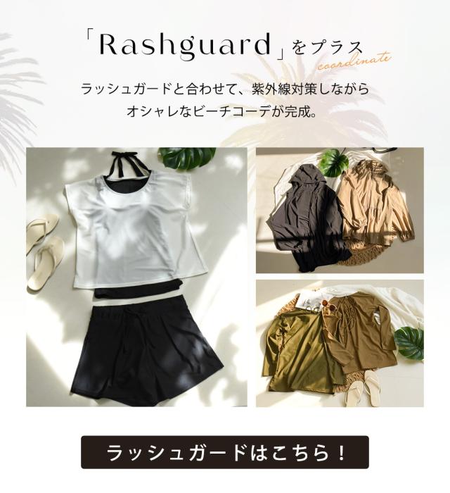 ラッシュガードと合わせて、紫外線対策しながらオシャレなビーチコーデが完成。