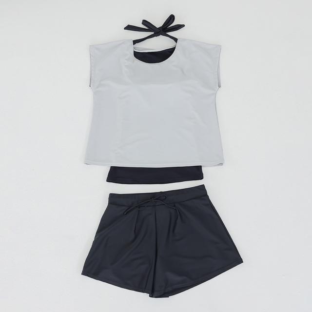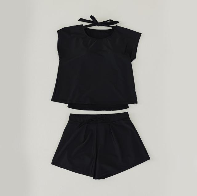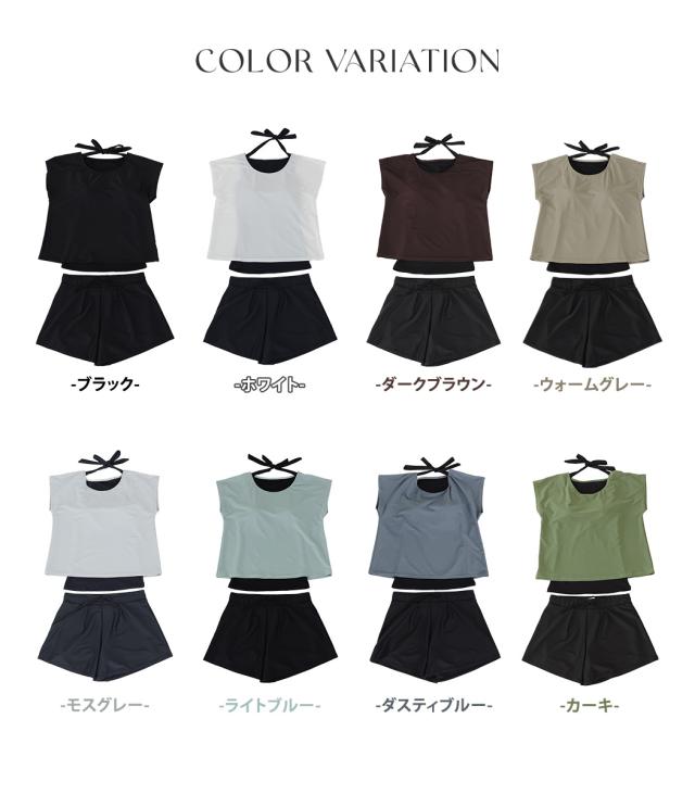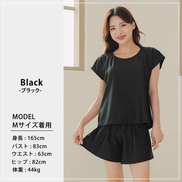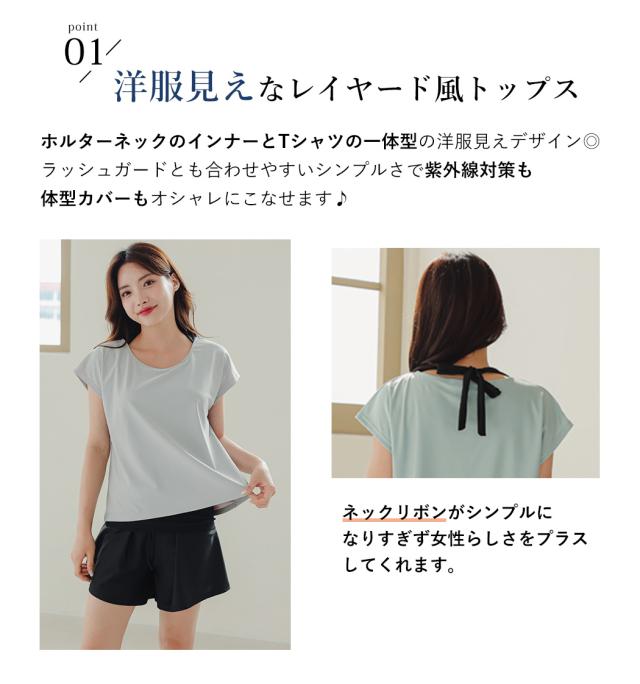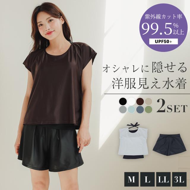 水着 レディース 体型カバー水着 UPF50+ ママ水着 セパレート 大きいサイズ レイヤード風 半袖ラッシュガードセット ショートパンツ 2点セット 黒 白 かわいい 服みたいな ウエスト調節 ミセス 大人 ウエスト ヒップ 太もも カバーアップ