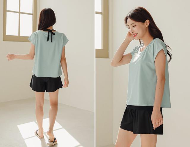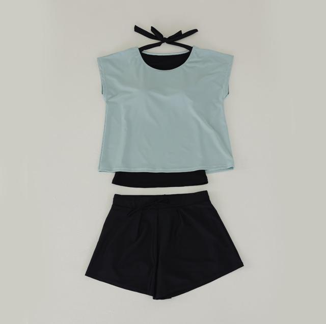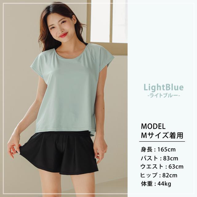 - 上衣を何色にするか3日間悩みました。結局ダスティブルーを購入、とても綺麗な色目です。素材はしっかりしていて、重ね着風デザインも良く透ける心配もないです。夏休みにプールに行くのが楽しみです。