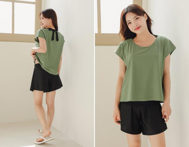 ショートパンツはひらっと広がるオシャレなデザインで