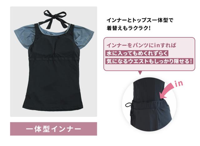 インナーをパンツにinすれば水に入ってもめくれずらく気になるウエストもしっかり隠せる!