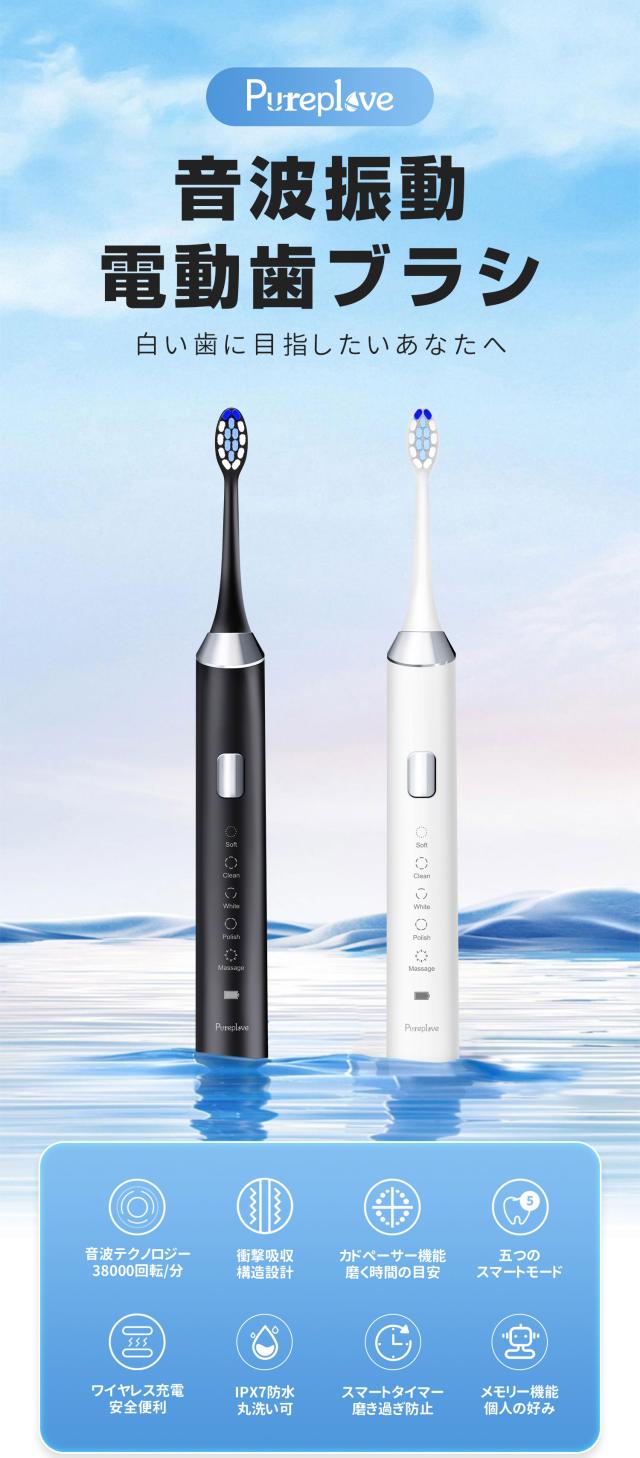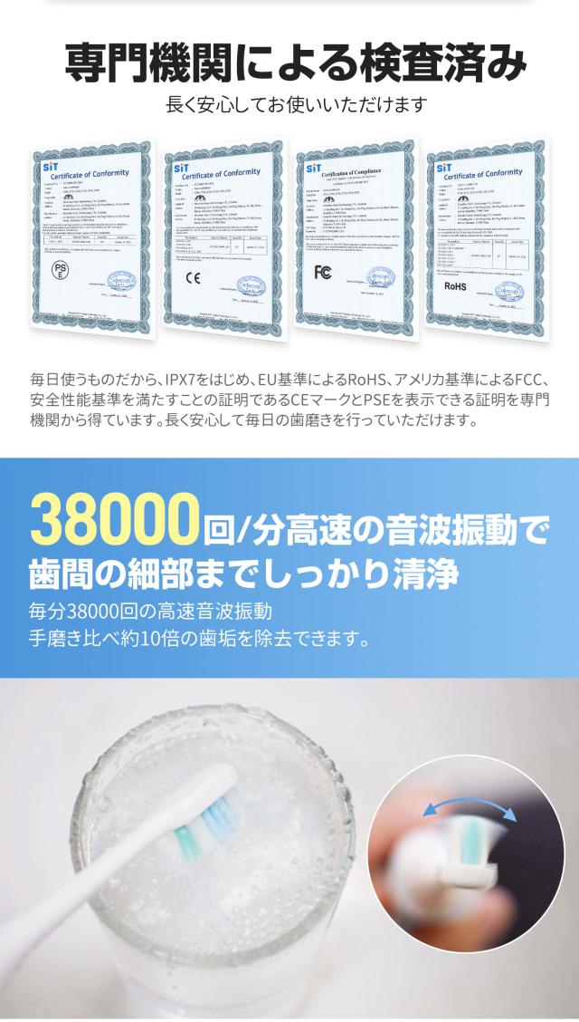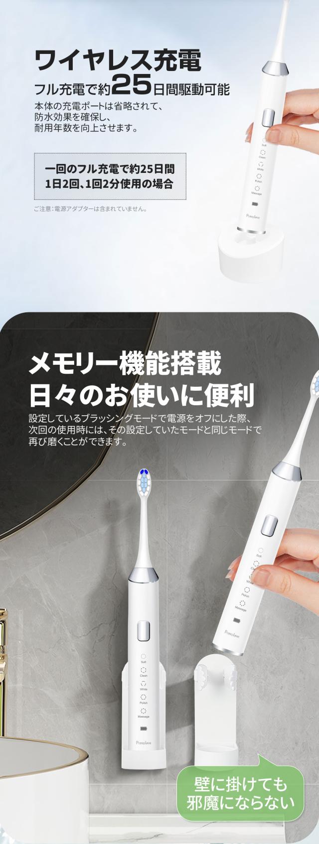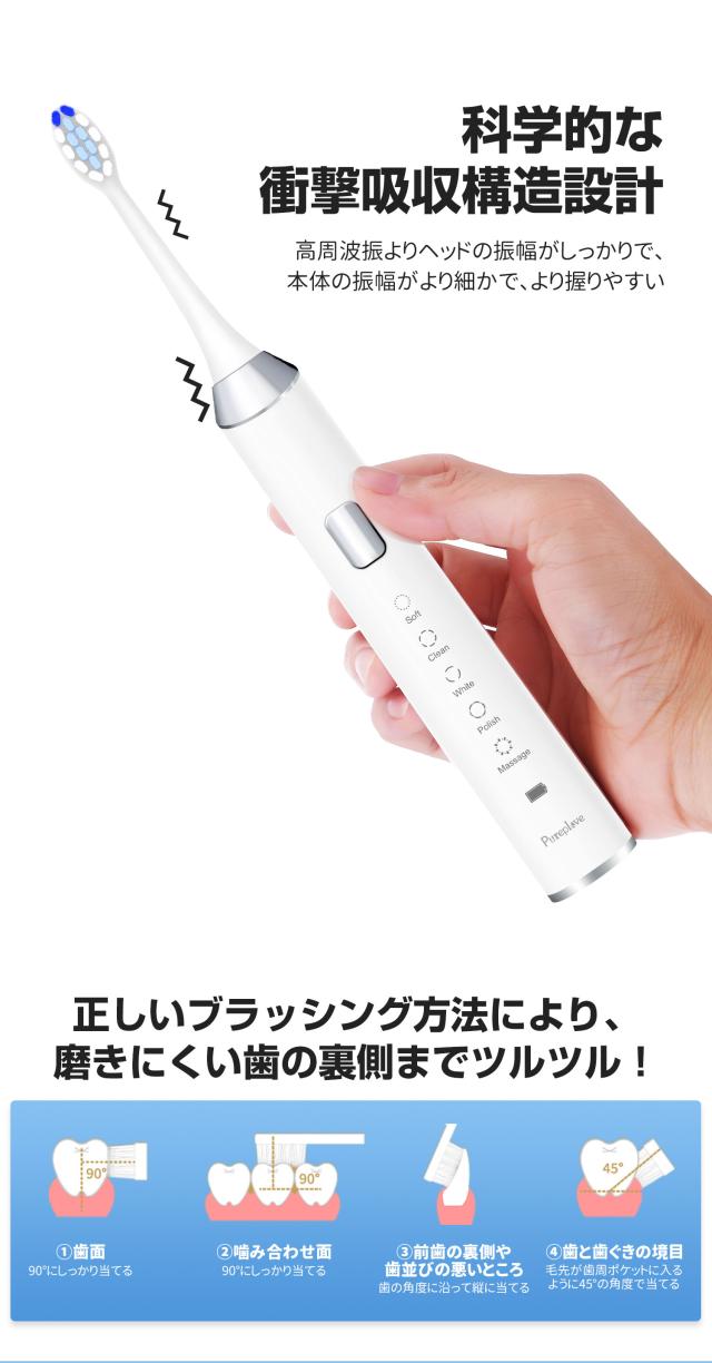 電動歯ブラシ 音波歯ブラシ 携帯歯ブラシ 静音 38000回転/分 歯ブラシ磨き 除菌器 ワイヤレス充電 IPX7防水 やわらかめ 5つモード タイマー 飛び散り防止 歯磨き メモリー機能 低ノイズ 口臭ケア 口臭予防 歯石予防 歯垢除去 子供用 携帯 旅行 出張