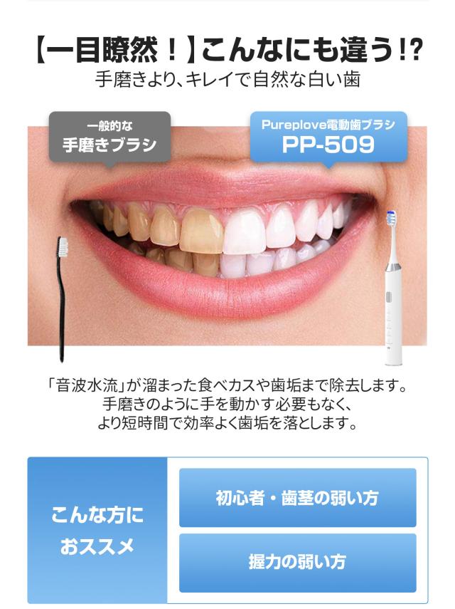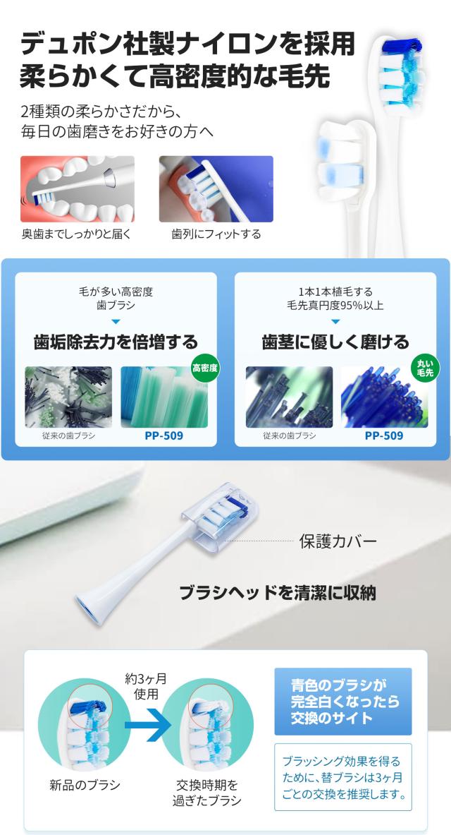 周囲に強いストレスに与え、より徹底的に歯茎を清潔。細かな振幅、より握りやすい ブラシヘッドが85%動力アップ、本体の振幅が15%にダン。
