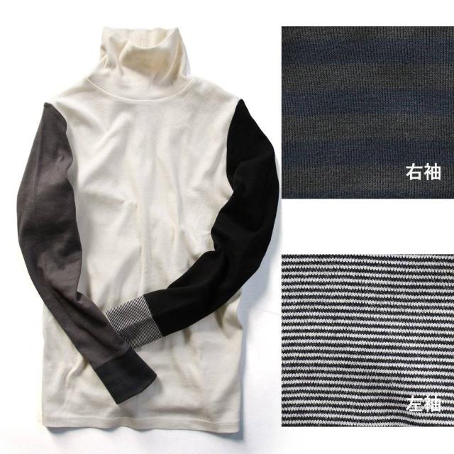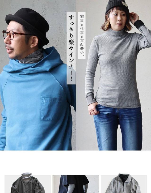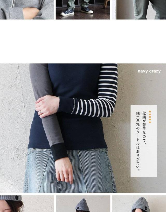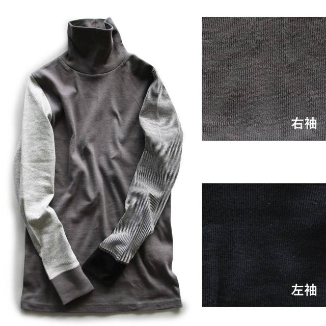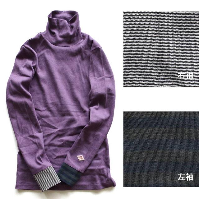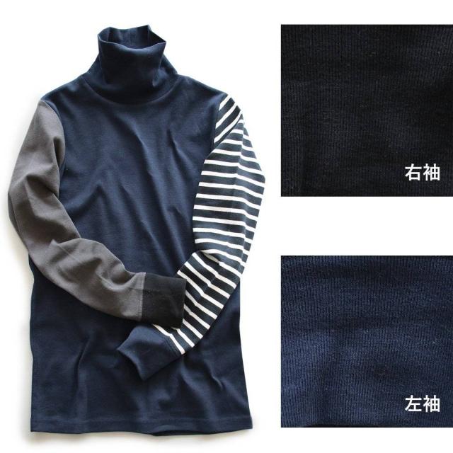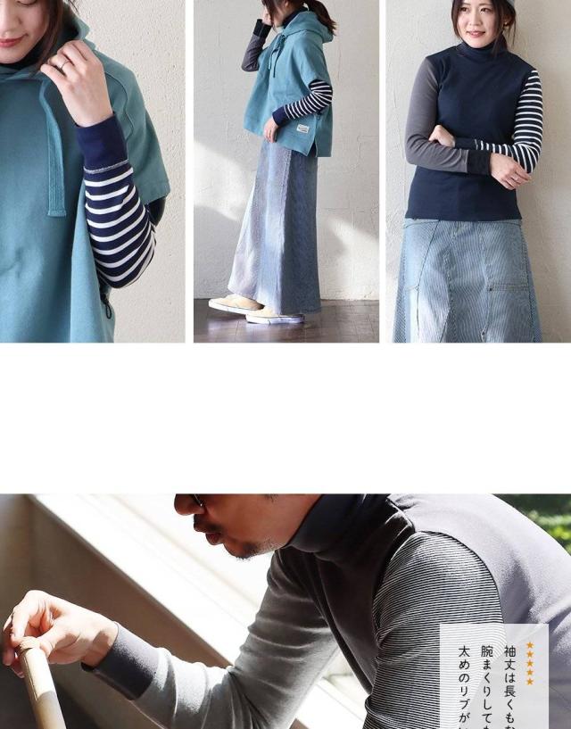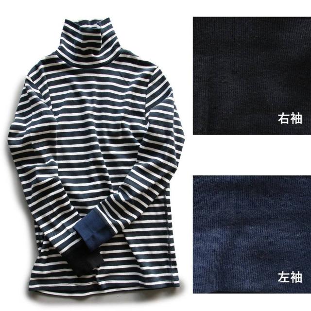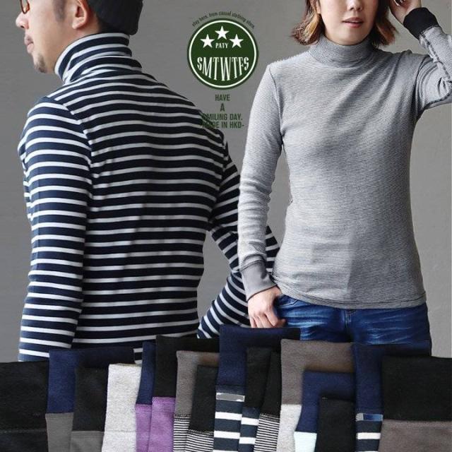 【メール便50】 タートルネック 長袖 カットソー レディース メンズ 重ね着 すっきり フィット 着痩せ しっかり 丈夫 ストレッチ 柔らかい 綿100% コットン 秋 冬 春 インナー ロング丈 クレイジー 配色 リブ トップス 洗濯に強い パティ PATY パティ
