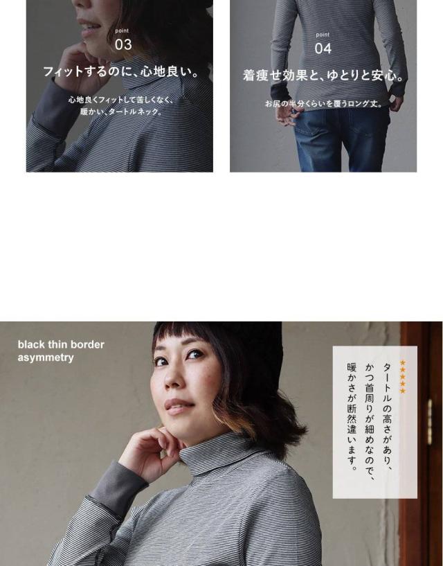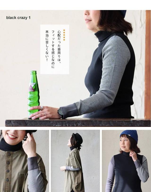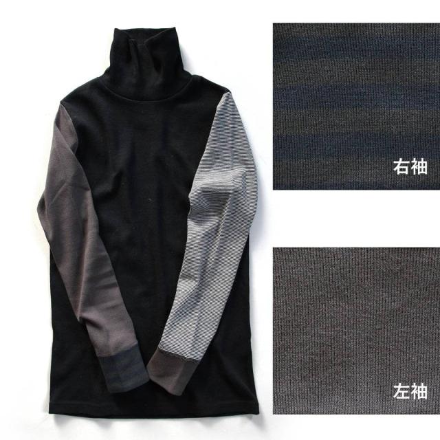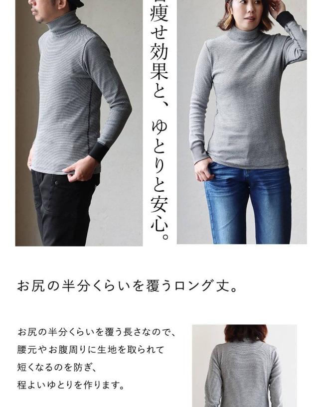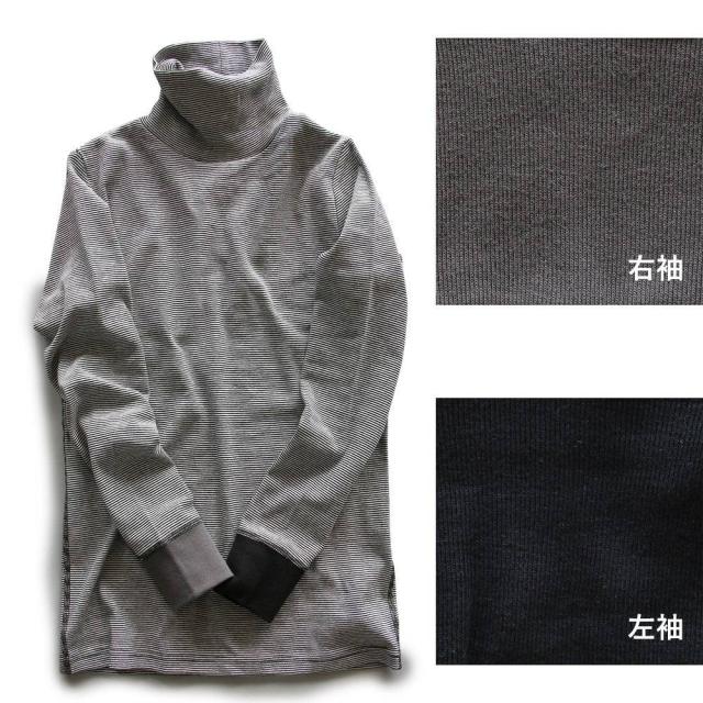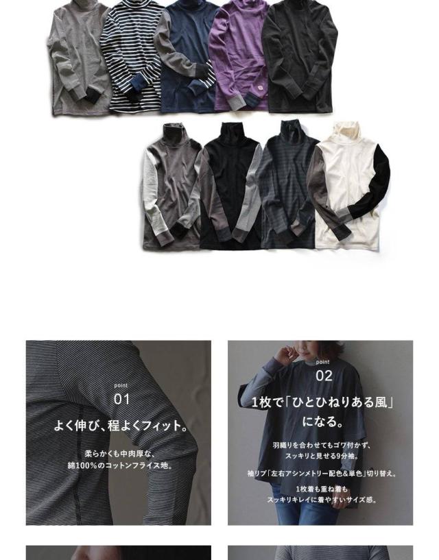 タートルネック 長袖 カットソー レディース メンズ 重ね着 すっきり フィット 着痩せ しっかり 丈夫 ストレッチ 柔らかい 綿100% コットン 秋 冬 春 インナー ロング丈 クレイジー 配色 リブ トップス 洗濯に強い パティ