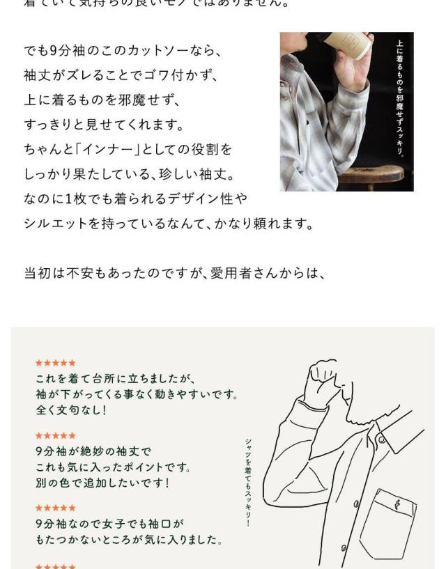 ・羽織りを合わせてもゴワ付かず、スッキリと見せる9分袖。