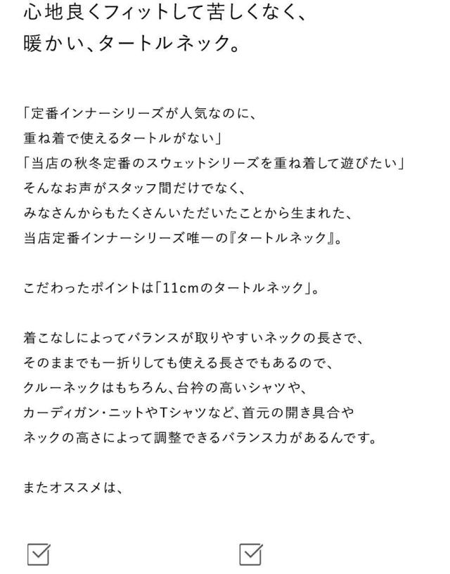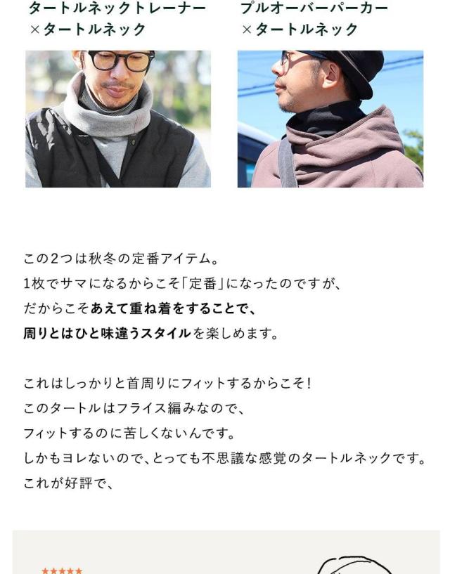 ・心地良くフィットして苦しくなく、暖かい、タートルネック。