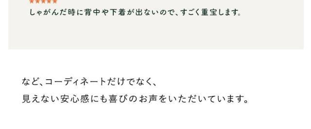 ・1枚着も重ね着もスッキリキレイに着やすいサイズ感。