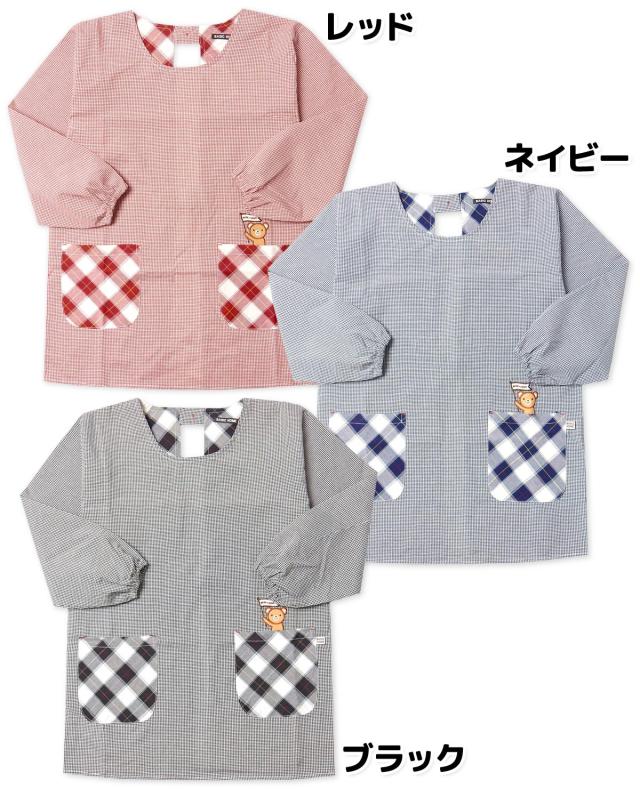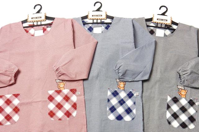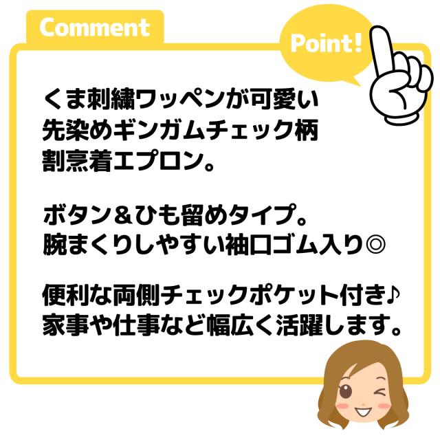 ンガムチェック柄割烹着エプロン。