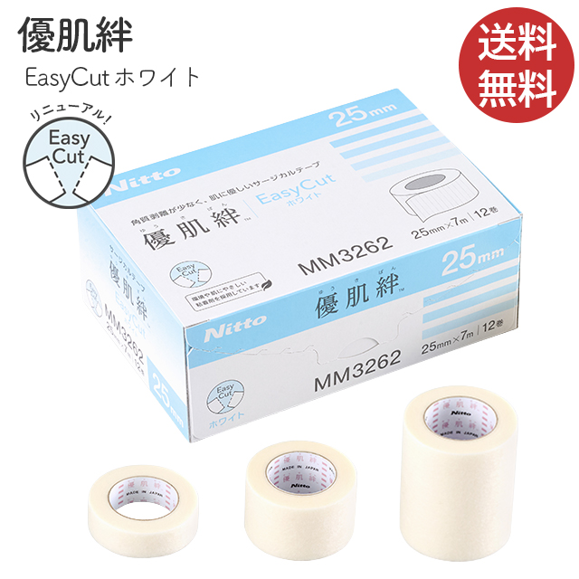 優肌絆EasyCutホワイト(優肌絆不織布(白)の後継品) 3261/3262/3265 ニトムズ【ゆうきばん 医療用テープ】