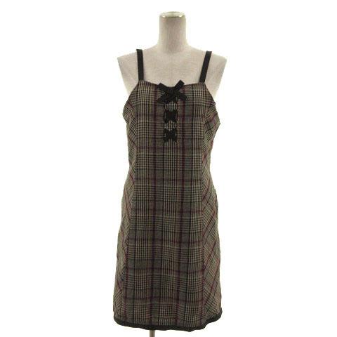 【中古】メゾピアノ mezzo piano ワンピース キャミワンピ ひざ丈 リボン チェック ベージュ 黒 エンジ 黄色 L キッズ