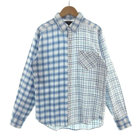 【中古】シンプリシテェ Simplicite シャツ ボタンダウン 長袖 胸ポケ クレイジーパターン コットン ブルー 青 水色 白 38