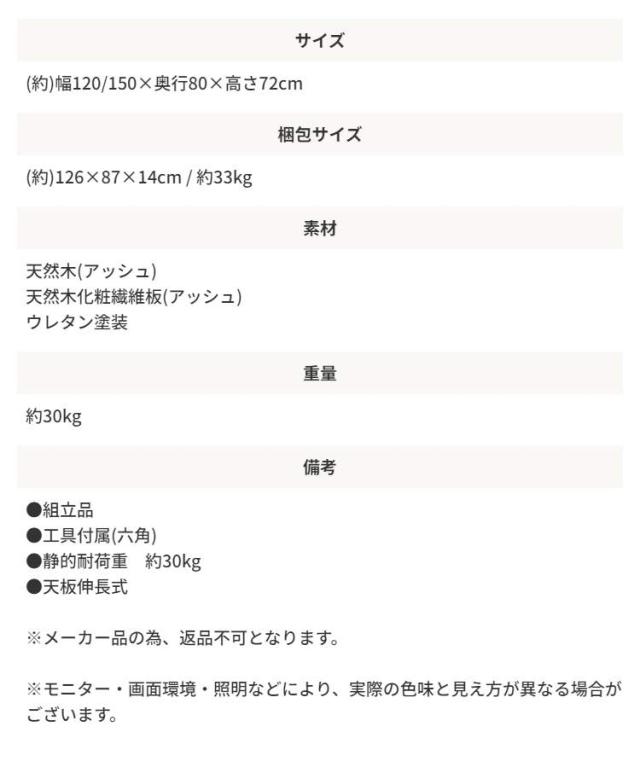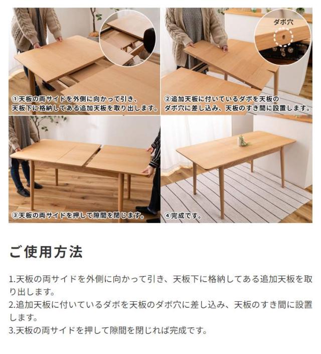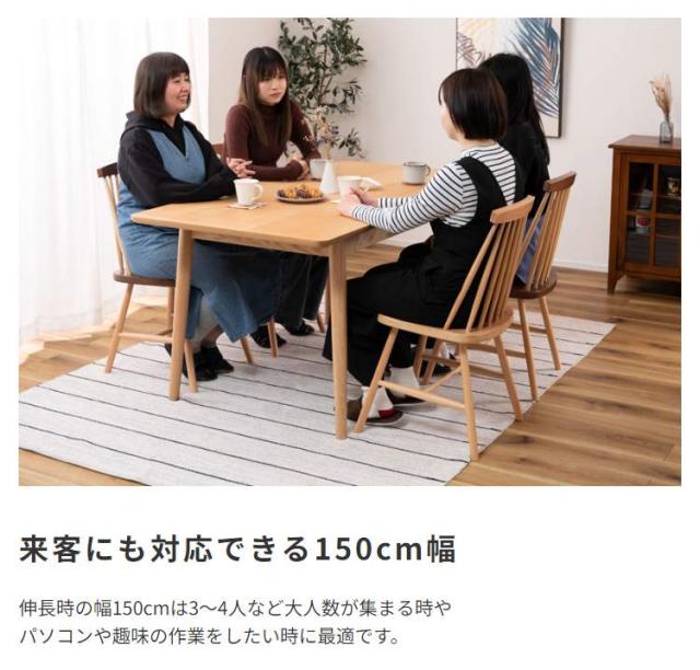 伸縮ダイニングテーブル エクステンションテーブル 伸張式テーブル 幅120〜150cm 必要な時だけサッと広げられる伸縮式