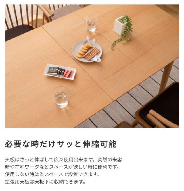 天板は伸長式で来客時や在宅ワークなどスペースが欲しい時に便利です。