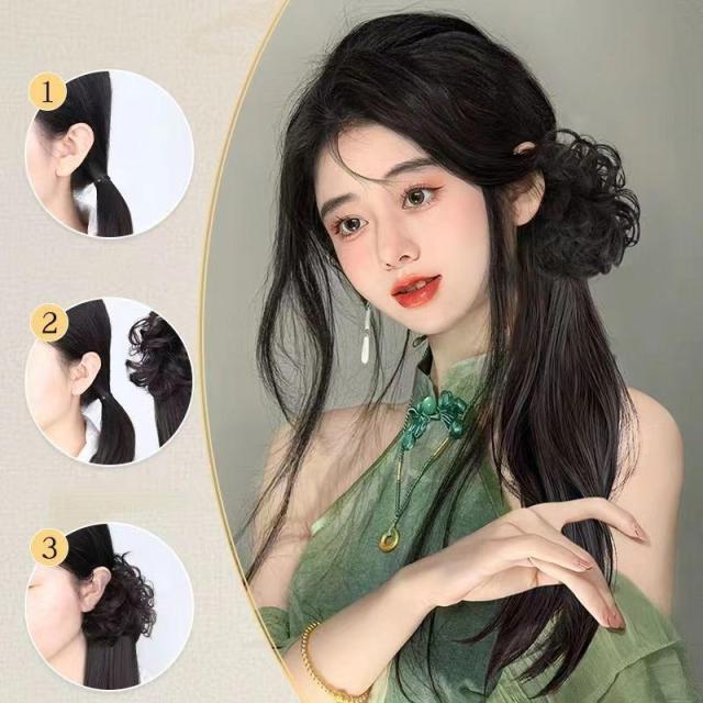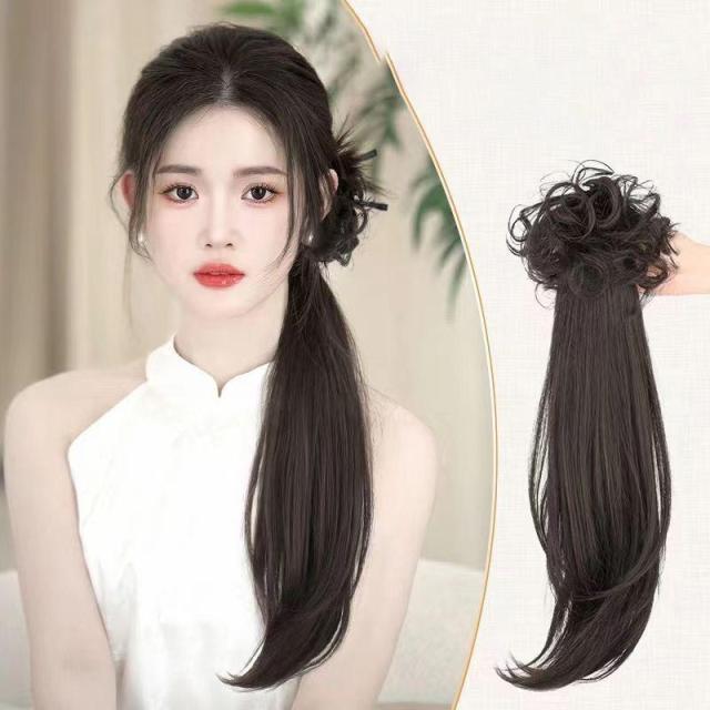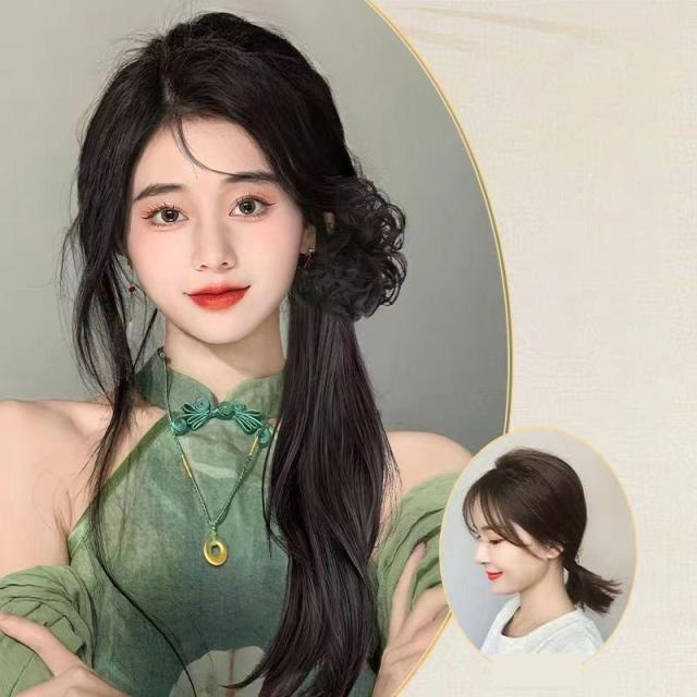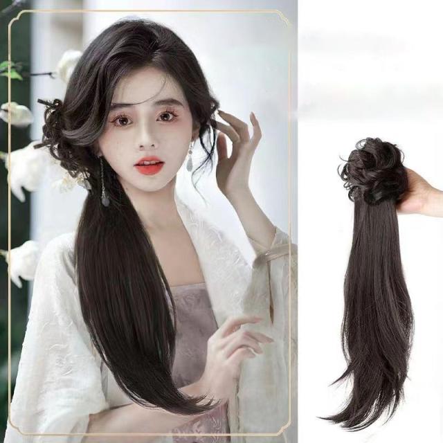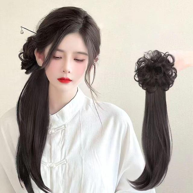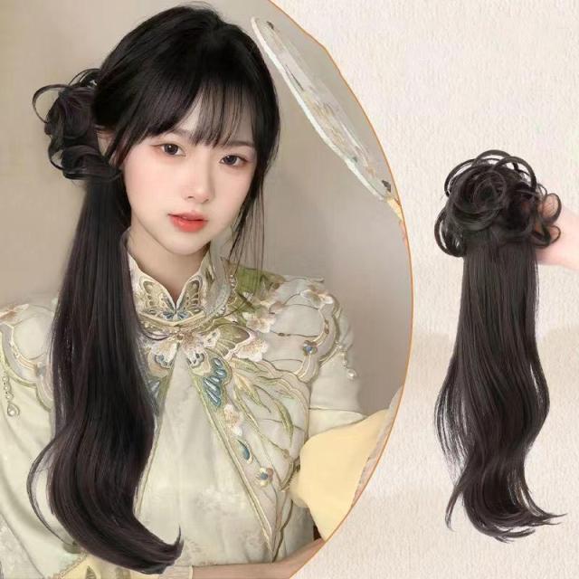 ウィッグ ポニーテール レディース ロング 女性 ワンタッチ お団子 自然 部分 つけ毛 自然 和装 2タイプ ヘアアクセサリー 髪飾り