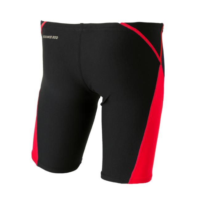 毎日のトレーニングを支える高い耐塩素性・4WAYストレッチ性に加え、透けにくい厚みと柔らかな風合いを実現した、ペットボトルを粉砕して再生したリサイクルポリエステルと植物性由来原料のSOLOTEXを使用した環境負担軽減素材「ENDURANCE ECO(エンデュランス・エコ)」を採用したジュニアジャマーです。