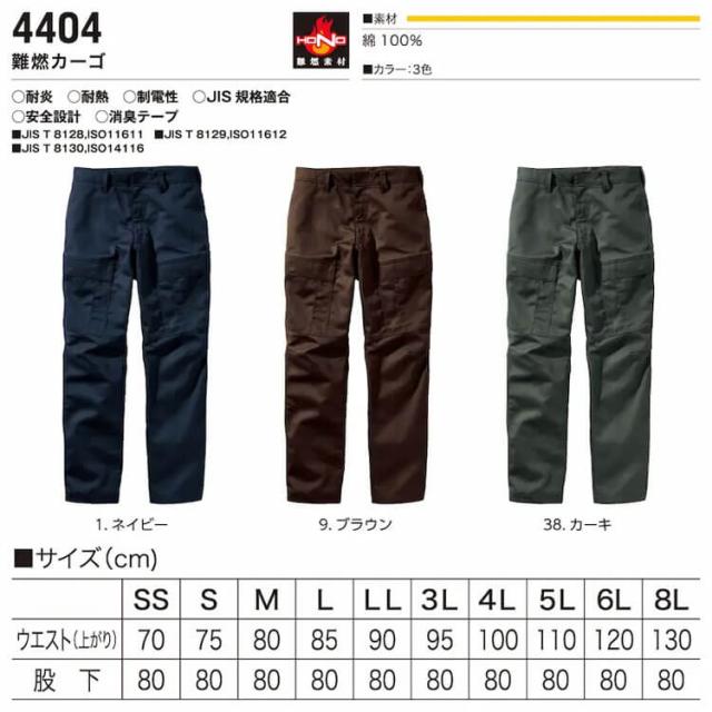 HOOH 村上被服 難燃カーゴ 4404 通年 カーゴパンツ 防炎防護服 作業着 作業服 帯電防止 耐炎 耐熱 JIS規格適合 4L〜8Lサイズ