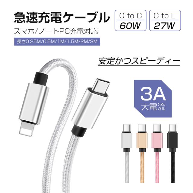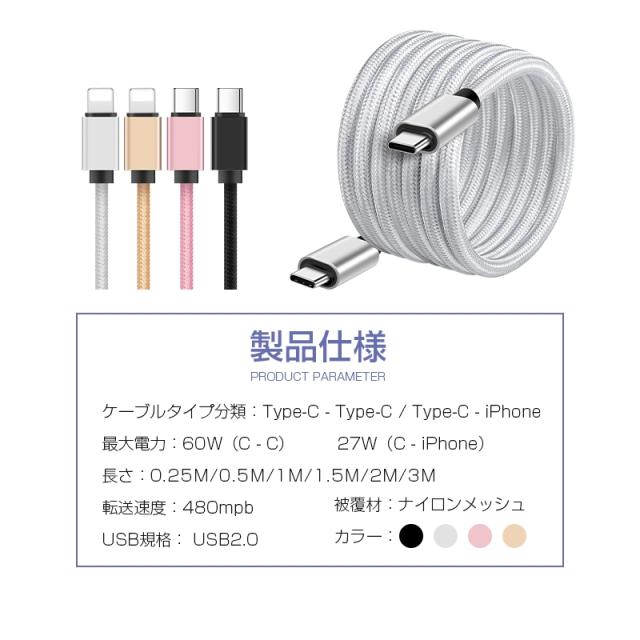 【0.25/0.5/1/1.5M】 Type-C to Type-Cケーブル タイプC 0.25m 0.5m 1m 1.5m スマホ充電 Type-C to iPhone充電ケーブル USB PD対応 急速充電 最大60W(20V/3A) データ同期 iPhone15/16/17 iOS/Android 【PL保険加入済み製品・安心】