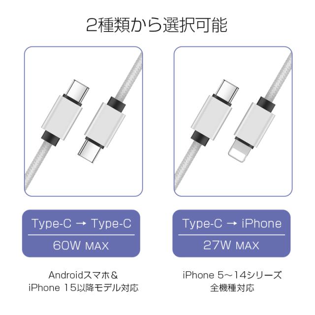 タイプ2:Type-C to iPhone(27W Max)