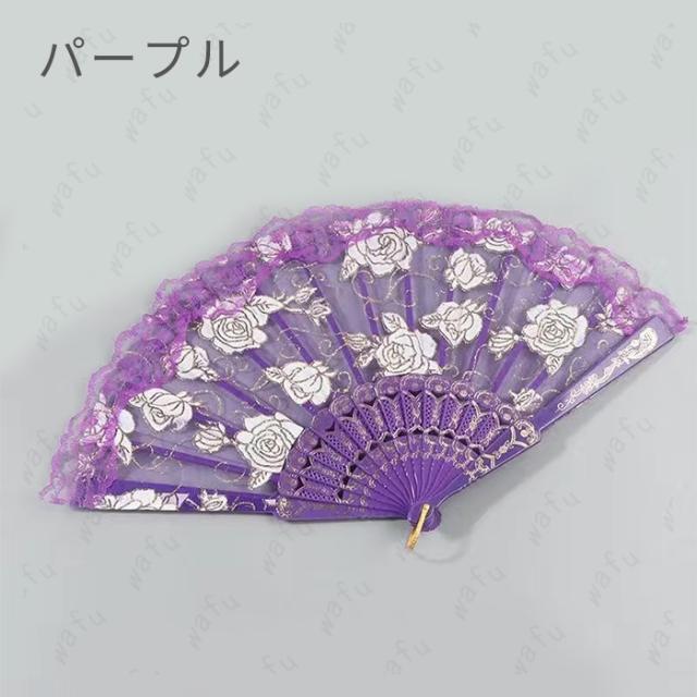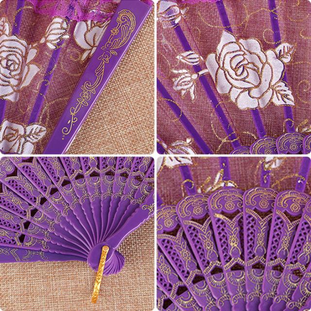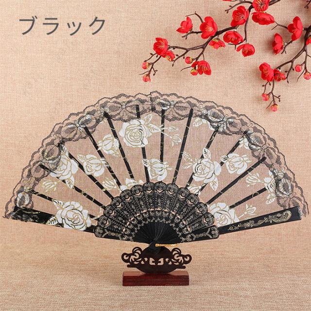 扇子 (#z137) 10 color 日本国内 当日発送 折り畳み 扇子 プラスチック ファン 薔薇 レース 古代 ダンス 漢服 コスプレ 宴会
