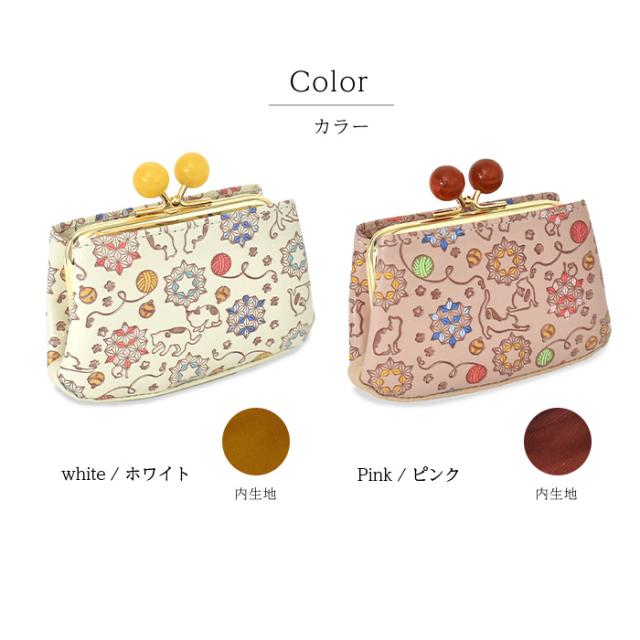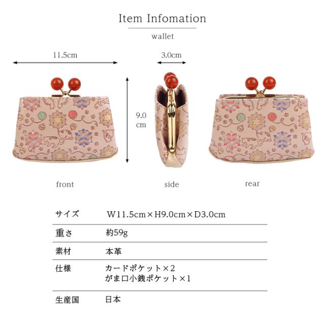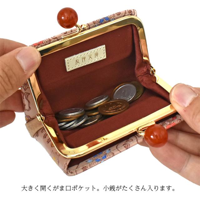 財布 レディース がま口財布 小銭入れ 口金 レディース かわいい 厄除け 魔除け 縁起 麻の葉 和柄 和風 本革 日本製 猫柄 ねこ 手描き 猫遊び 友禅文庫 母の日 プレゼント クリスマス