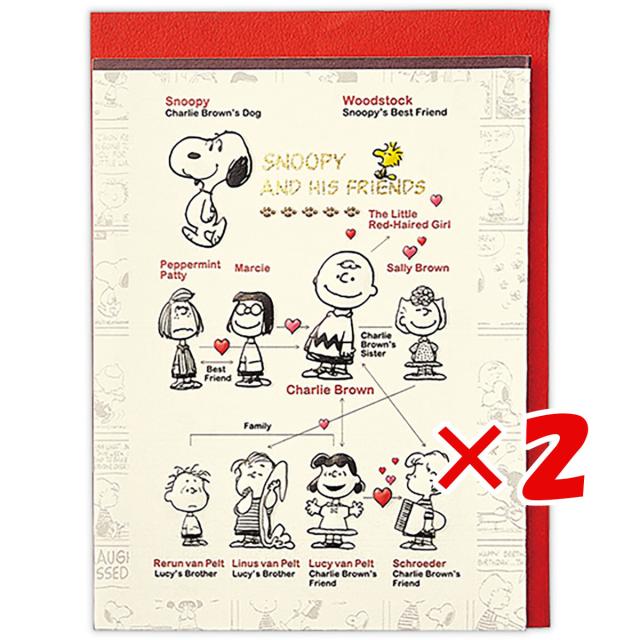 SNファンに大人気、SNと仲間たちの関係図がデザインされたフラットタイプのカードです。【検索キーワード】 多目的カード グリーティングカード スヌーピー 仲間たち