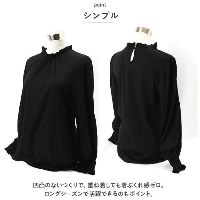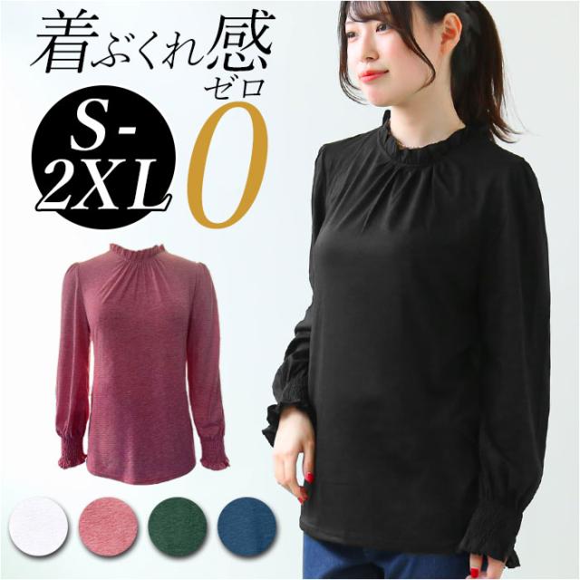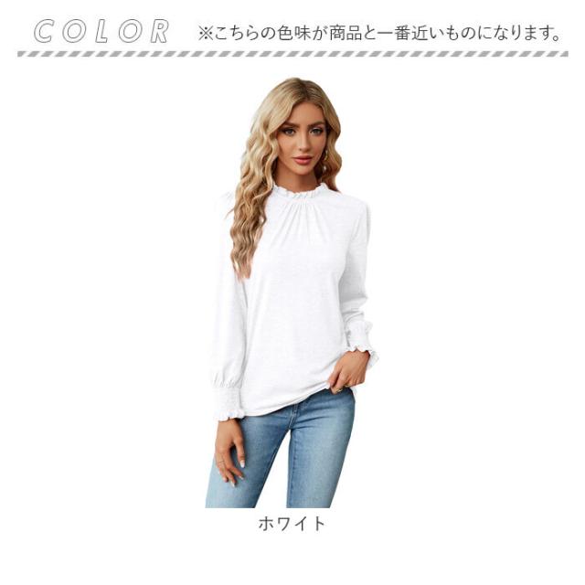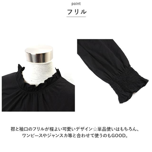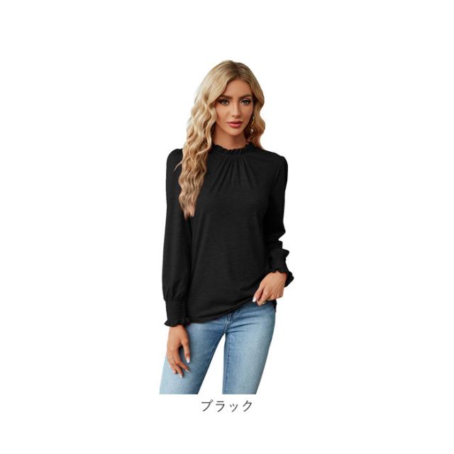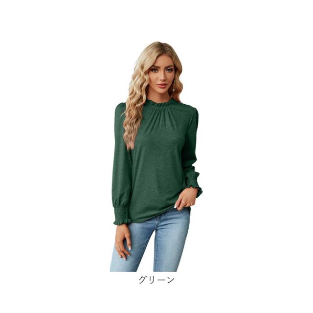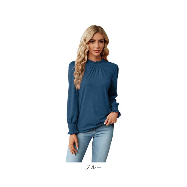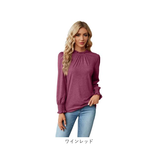 長袖 Tシャツ レディース 通販 カットソー ロングTシャツ ロンティー ロンT シャツ ティーシャツ プルオーバー トップス タートルネック ハイネック フリル 通勤 通学 重ね着