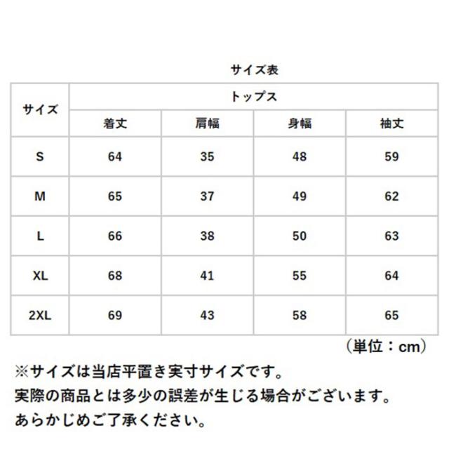 | サイズ | [レディース] ・Sサイズ ・Mサイズ ・Lサイズ ・XLサイズ ・2XLサイズ ※サイズについて詳細は、商品画像の中にあるサイズ表をご覧くださいませ。 |